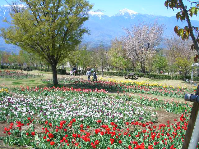 チューリップと雪山。。。なんとも言えない美しさです♪