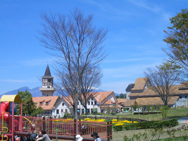 左の写真の左側にとんがった建物が展望台/ハイジの村なので「ヤギさん」