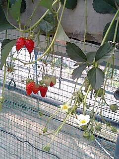 棚上げ式のイチゴ狩り/ハウス栽培のサクランボ狩り