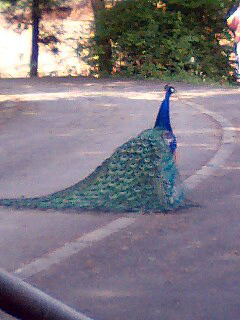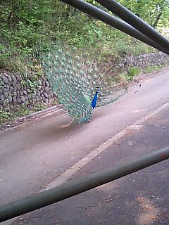 お昼を食べたすぐ近くにクジャクが居て(工事してる柵の中)