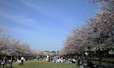 たくさんの人達がブルーシートを広げて「お花見」してたよんo(*^▽^*)o~♪