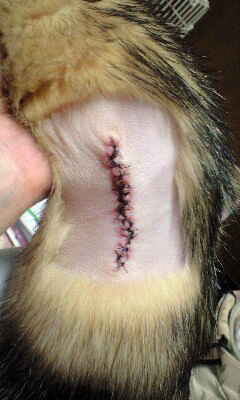 やっぱりカラーはしておいて欲しいです。傷を舐めて抜糸してしまうと